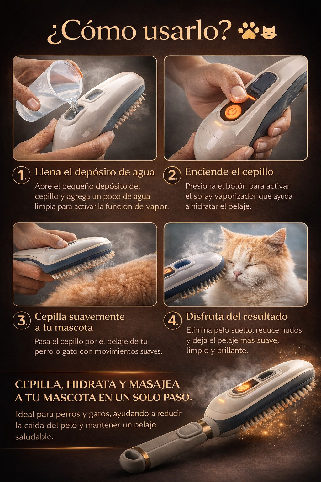 🐾 ¿Cómo usar el Cepillo Vaporizador para Mascotas?