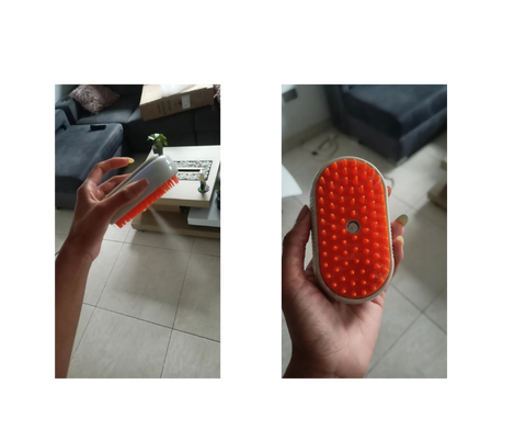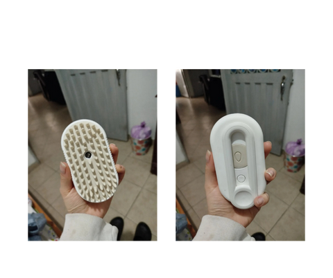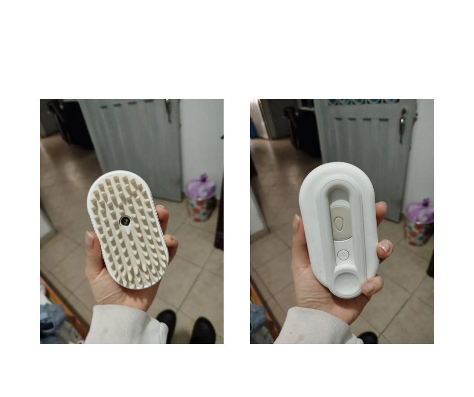 Tiene un mango, lo que facilita el peinado. El puerto de carga es de tipo C, lo cual es genial... La zona de llenado de agua también es amplia, por lo que se ve muy bien. Al gato le encanta el cepillado con vapor...
